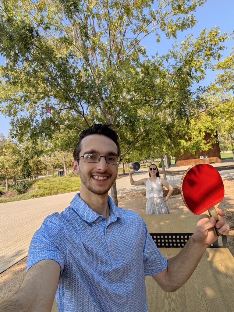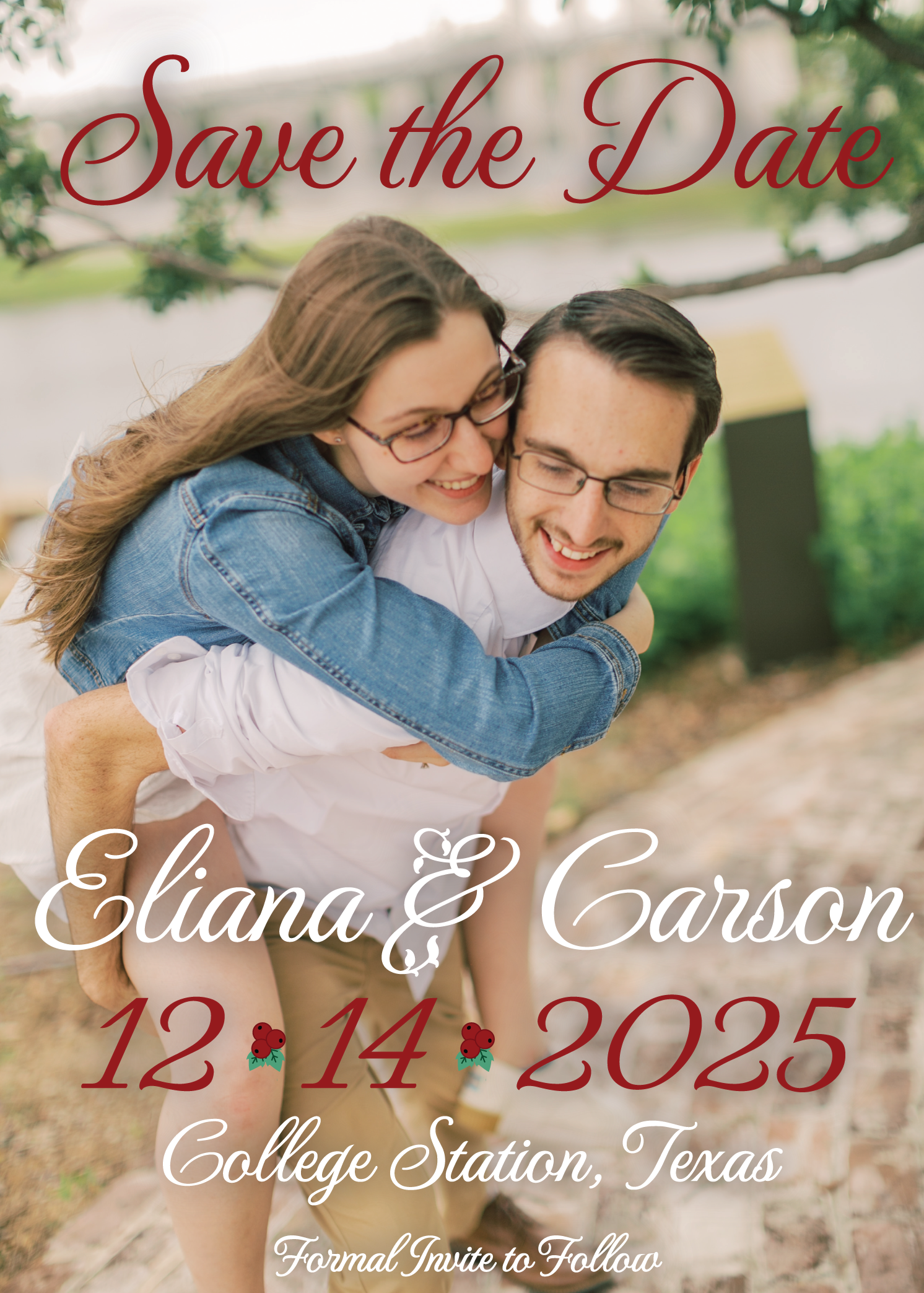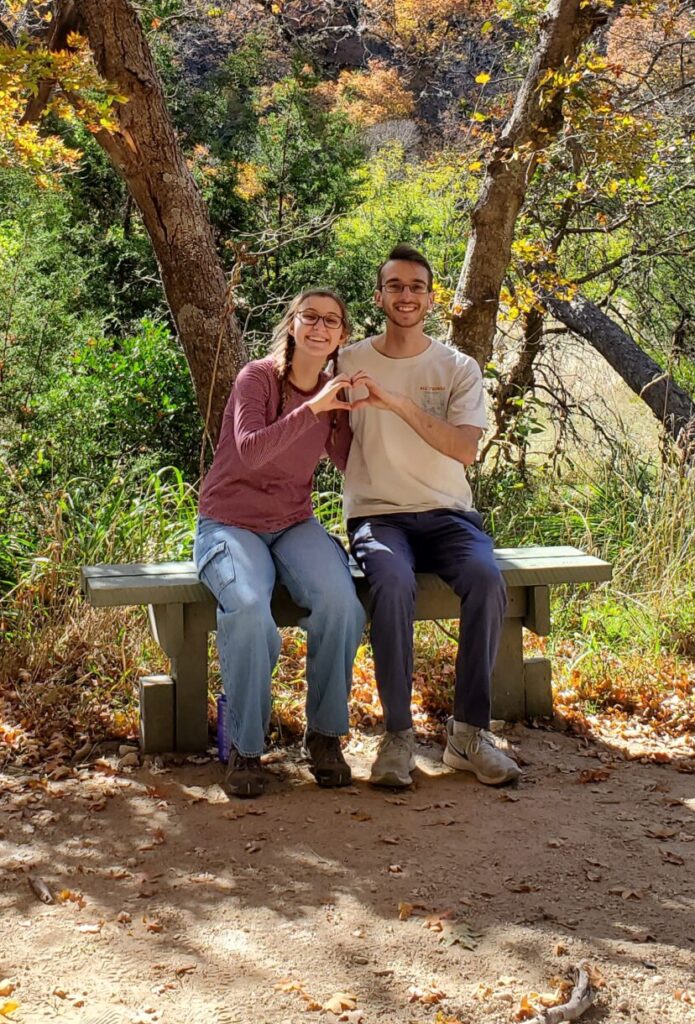That fall happened to be the time BeReal was on the rise. Most of their next two semesters were only photographed using the BeReal app. They saw each other three or more times each week to prepare for and lead their Bible study group through the Psalms. Little did Ellie know, Carson had caught feelings for her only a couple of weeks in! Because Bible study leaders were asked not to date within their group to avoid awkward dynamics within the members, he waited until the end of the fall semester, when they were no longer officially co-leading together, to confess his feelings to her. One fateful December 2nd in 2023, they decided to meet up to celebrate a great semester partnership by playing board games together in Aggie Park. Walking back to their cars, Carson finally thought the moment was right to admit his feelings to her and asked if she would be interested in going on a date.