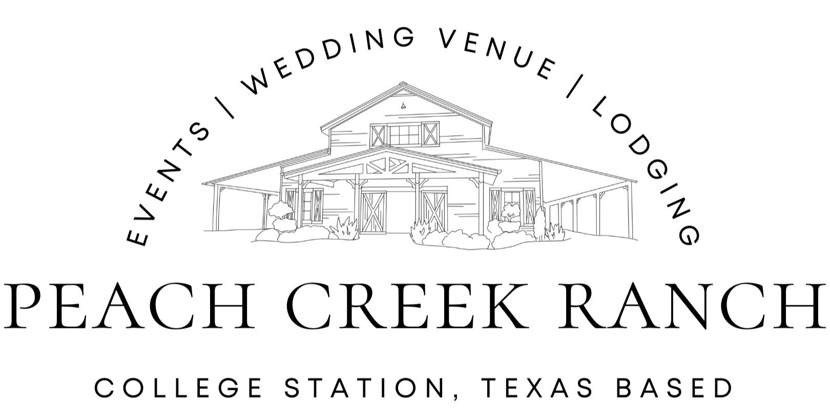 Peach Creek Ranch is the venue that Ellie and Carson selected for their big day. It is located just off of Welborn Road in College Station, about 15 minutes south of the Texas A&M campus. The property is quiet and secluded, with plenty of space to stretch your legs or explore. Just past the ceremony location is a pond with a walking trail around it: a great spot to retreat and enjoy the Lord’s creation for a few minutes if you need a break from the action. The courtyard is also a great place to relax before the ceremony or during the reception. There will be yard games and some open space for little ones to run around and play.